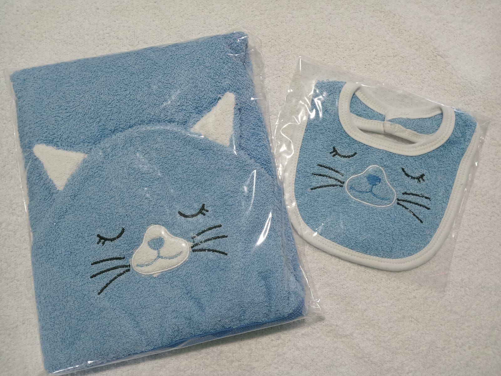 Toalla bordada color celeste mas babero